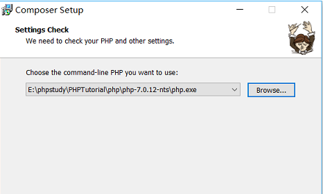 安装程序会自动找到电脑上的php.exe的路径,如果路径不对,可以手动更改。然后再点击next
